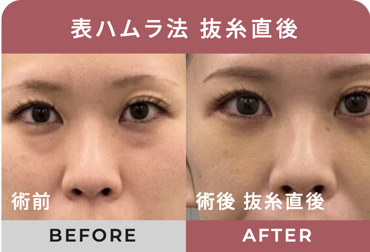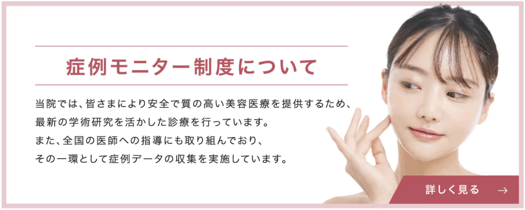 副作用・リスク:出血、感染、傷跡、色素沈着、凹凸が生じる可能性、左右差を生じる可能性、理想とする仕上がりと異なるなど。