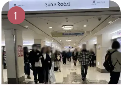 サンロードをそのまま直進し、ミヤコ地下街へ進み、ミヤコ地下街の2番出口を出ます。