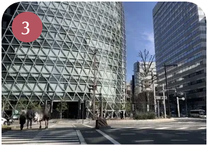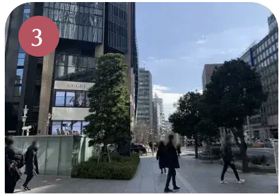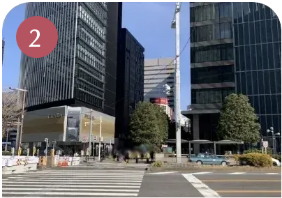 外へ出たら、ミッドランドスクエア側に信号を渡り、右折します。