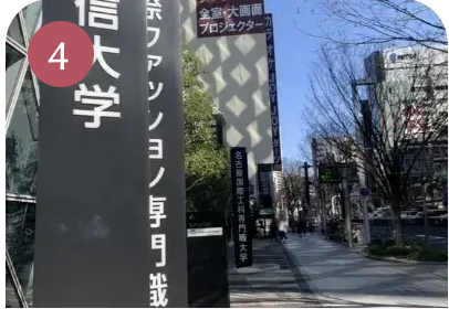 | 経路 | 名古屋駅よりミヤコ地下街2番出口から出てすぐ。モード学園スパイラルタワーズを目印にカラオケJOYJOYの隣のビルです。 |