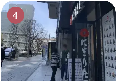 そのまままっすぐ進み、おにぎり屋さんの角を右折し、μX MEIEKIへ入り4階へ。