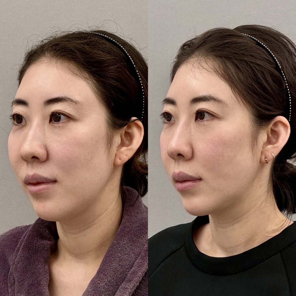 頬顎下VASER脂肪吸引の症例です。頬は少なめでしたが調整する程度として顎下はしっかりと吸引を行なっています。3ヶ月経過して拘縮もほとんどなくなりスッキリしてきました。6ヶ月後の完成が楽しみです。