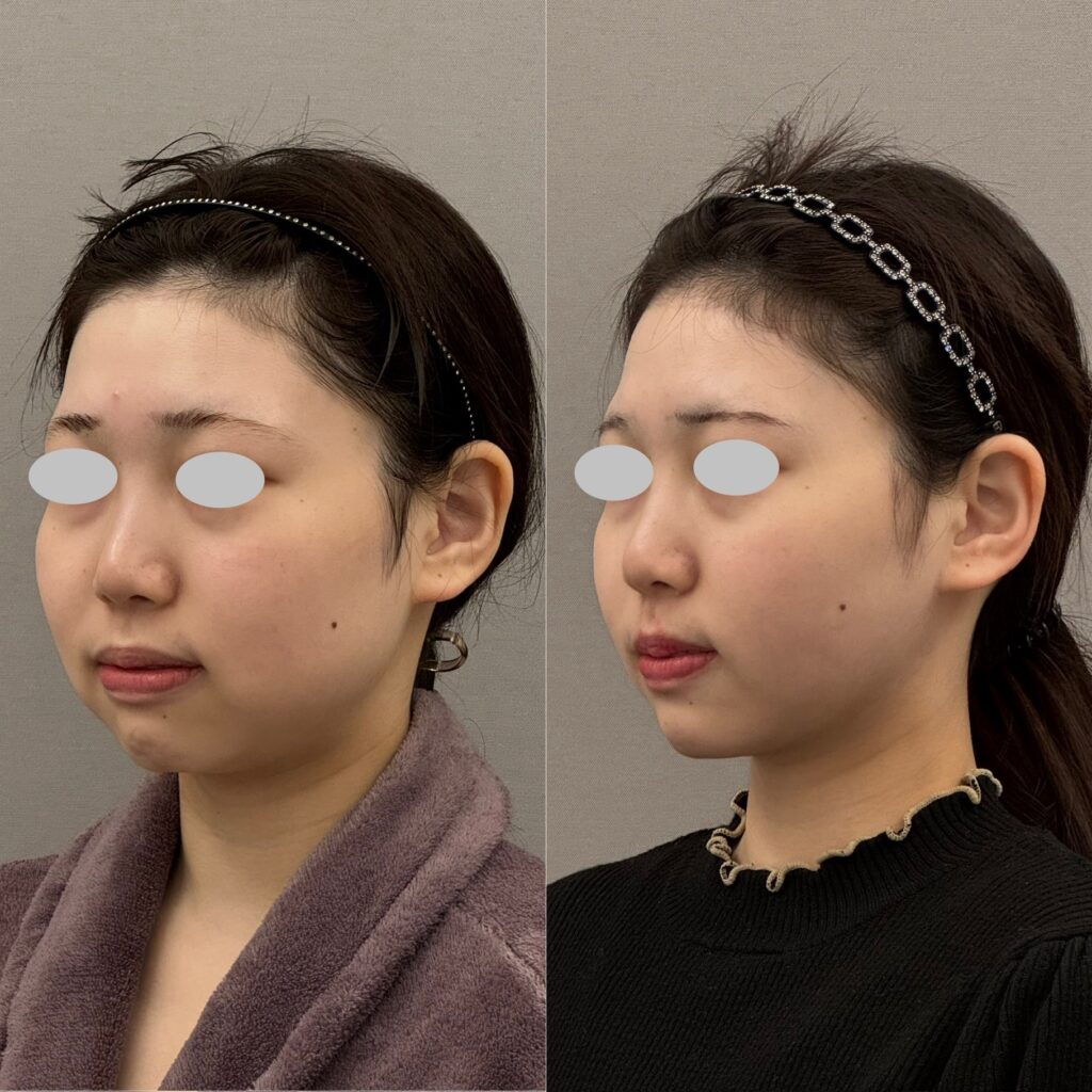 頬顎下VASER脂肪吸引の症例です。顎先に緊張があるので表情を調整するためとフェイスラインを整えるために顎先ボトックスとボトックスリフトも行いました。3ヶ月経過して拘縮もほとんどなくなりスッキリしてきました。40ccほど吸引できているので変化が大きいですね。6ヶ月後の完成が楽しみです。