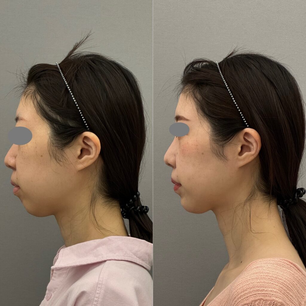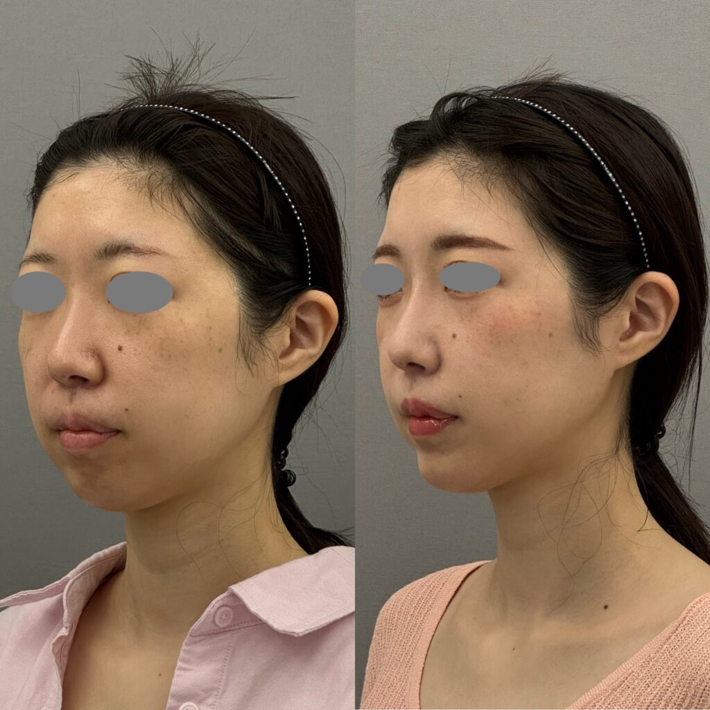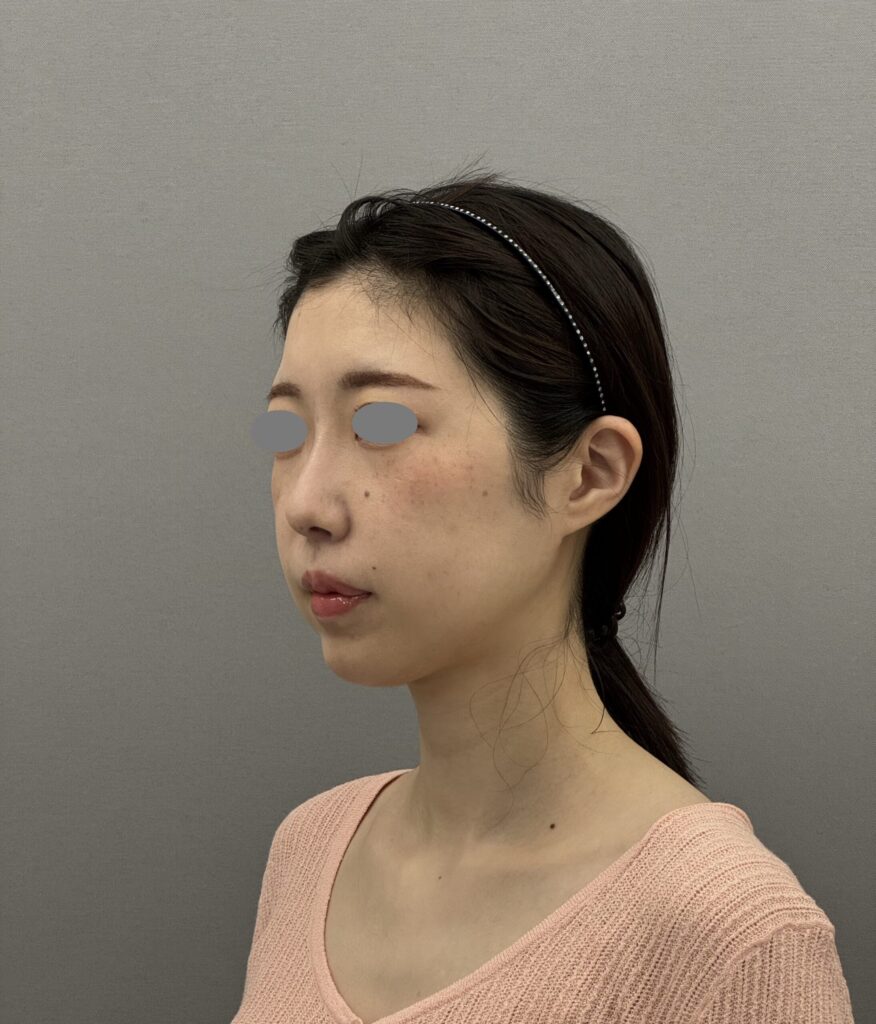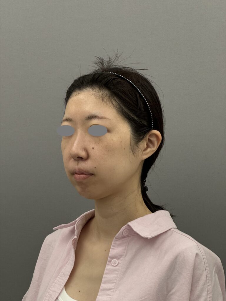 30代女性 フェイスラインが悩みとのことでした。脂肪が少ない、下顎がやや低形成のため吸引で理想の変化を出すのが難しい症例でした。ヒアルロン酸とボトックスでフェイスラインを整えてスッキリ見せる方針としました。ほうれい線にもヒアルロン酸を注入しています。どの方向から見てもシュッとしてスッキリとした印象になりましたね。吸引は引き算ですが、足し算も必要な時があります。料金:ヒアルロン酸1cc 77,000円~(今回はボリューマ1cc,ボラックス1ccを使用)、ボトックスビスタ4,9500円 副作用・リスク:出血、感染、アレルギー、しこり、血管塞栓、理想とする仕上がりにならない可能性があるなど。