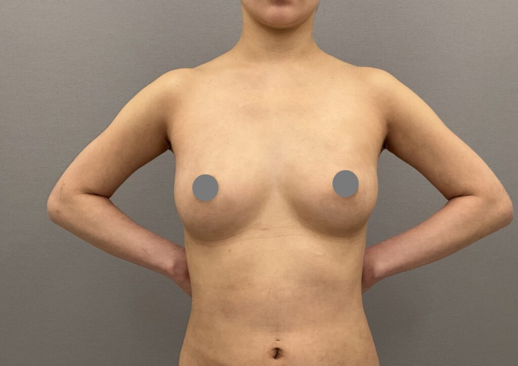 30代女性。授乳経験なし。お腹周りをスッキリさせたい、豊胸もしたいとのことでした。気になっているお腹周り(全腹部と腰)から脂肪採取を行い、脂肪豊胸を行いました。バストアップと同時に上半身がスッキリしてメリハリのあるボディに変化しました。腹部に色素沈着が見えますが、時間と共に改善していきます。仕上がりが楽しみですね。料金:脂肪豊胸(採取4部位)1,320,000円(税込) 別途静脈麻酔代や血液検査代や固定着代がかかります。副作用・リスク:出血、感染、色素沈着、傷跡、脂肪壊死、oil cystが生じる、脂肪の定着には個人差がある、希望とするサイズにならない可能性があるなど。