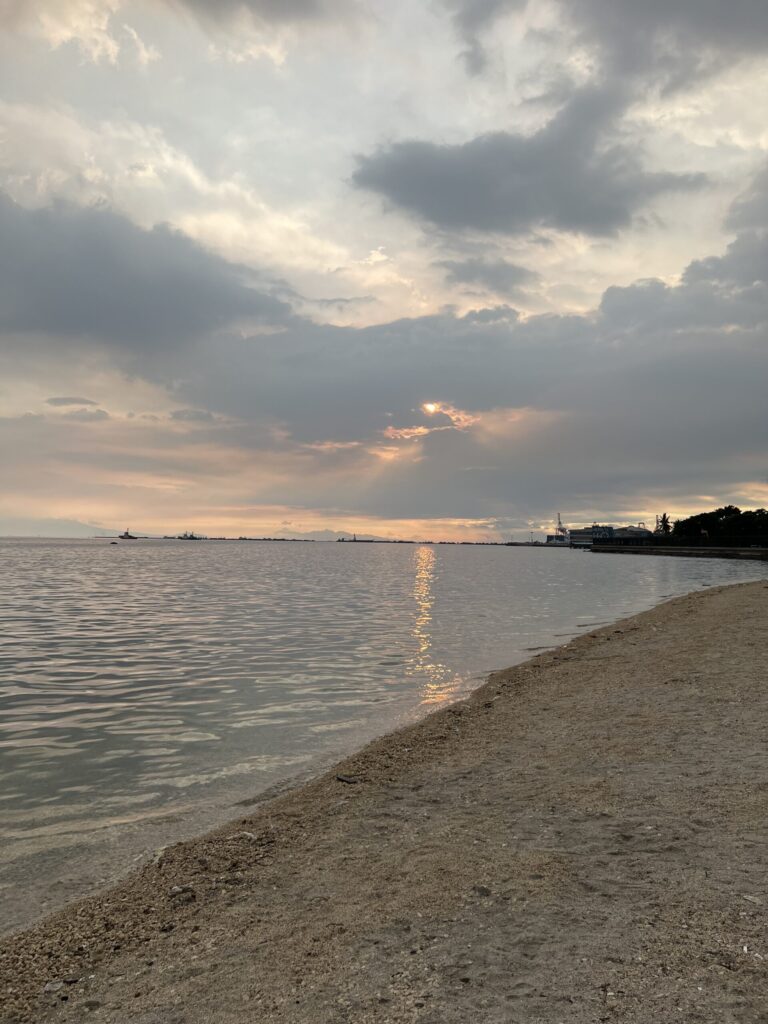 快晴ではなかったですが、絶景スポットと言われる夕日をなんとか撮れました。