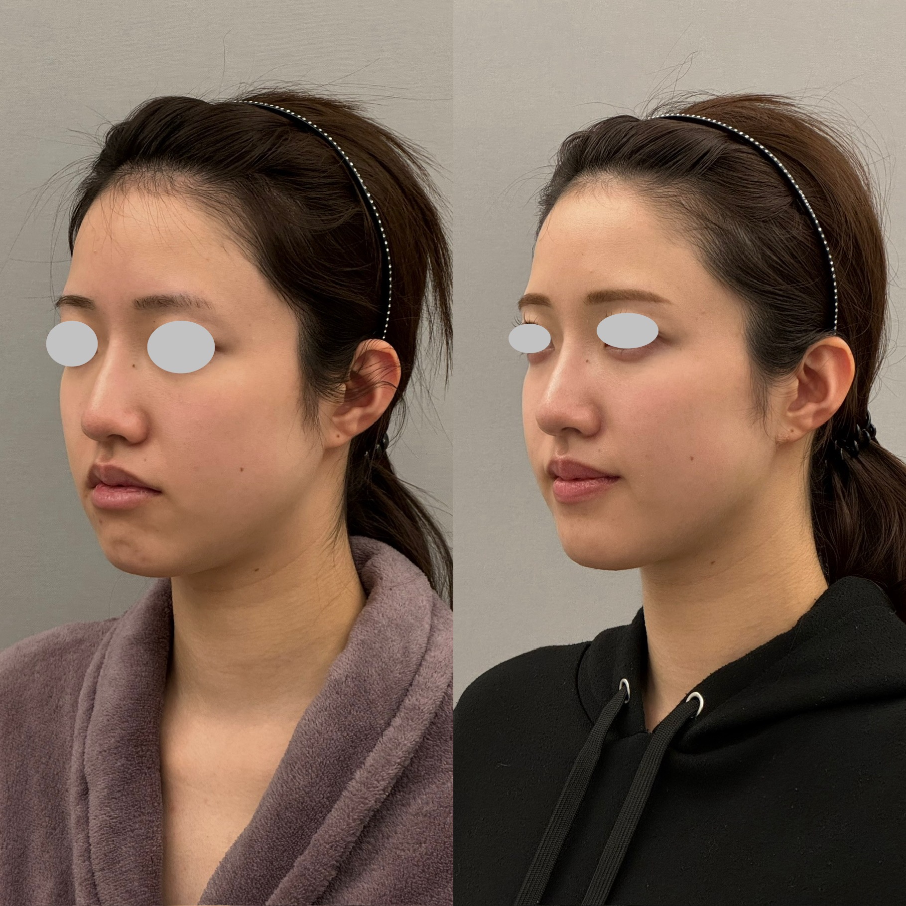 エラがなくなり正面もスッキリとした印象になっています。少し頬のコケがで始めたので2回目以降のエラボトックスは一旦見送った方が良いパターンです。また張ってきてボリュームがついた時に行うのが良いでしょう。このまま続けているとよりコケが目立つので経過を見て追加する時期は決めていきます。